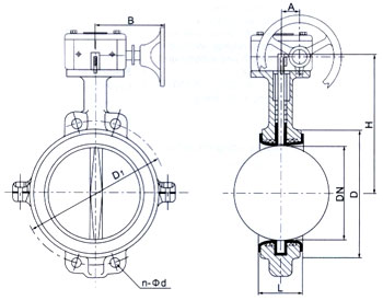 对夹连接蝶阀(中线)• 设计与制造符合中国国家标准• 基本结构形式(*蝶板轴与阀体/阀座中心重合)