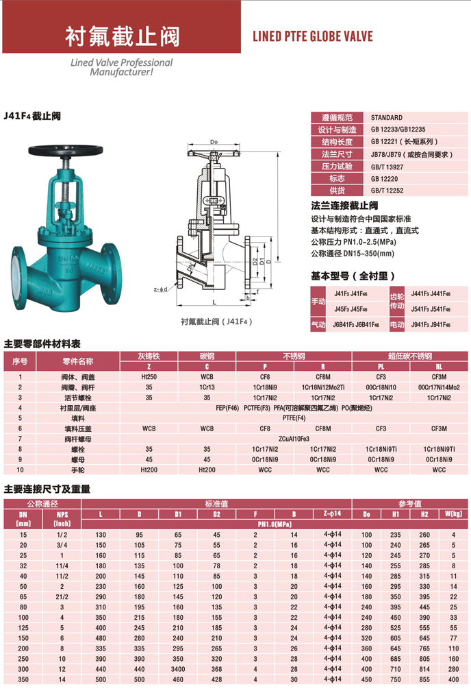 J41F46衬氟截止阀