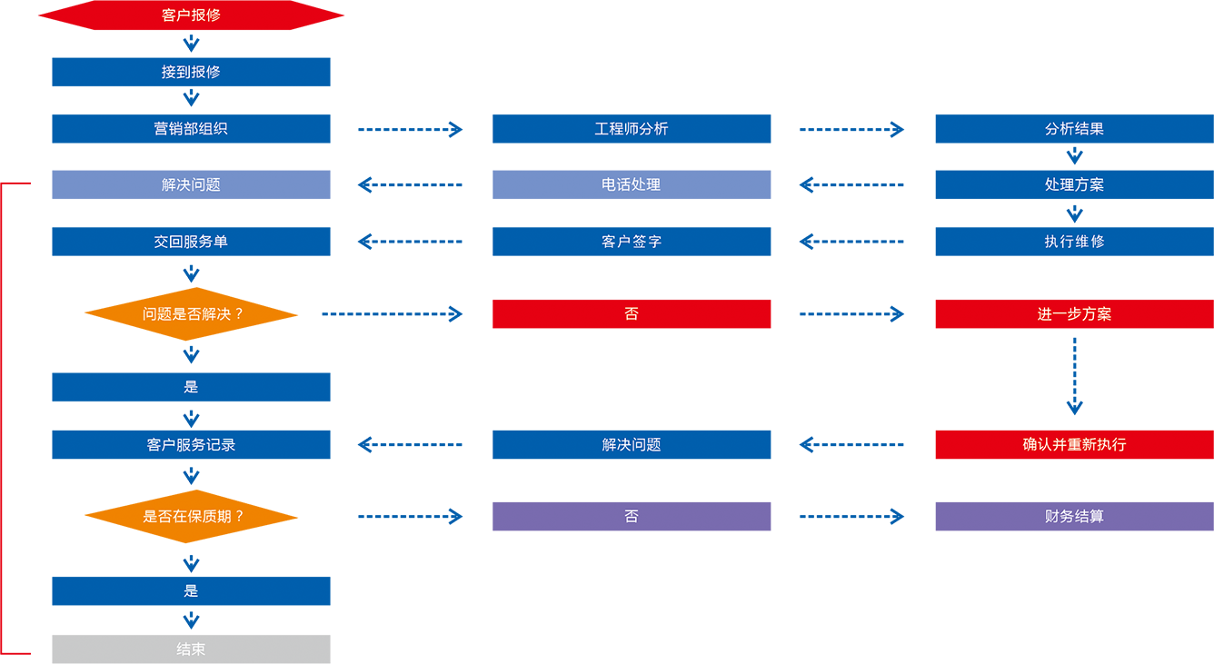 我公司拥有完善的技术售后服务团队,为用户提供24小时服务专线,接收并及时处理客户申告的故障服务。所有接到的客户电话、电子邮件和传真等都将记录在册,并跟踪直至彻底解决,一贯坚持"用户至上"原则